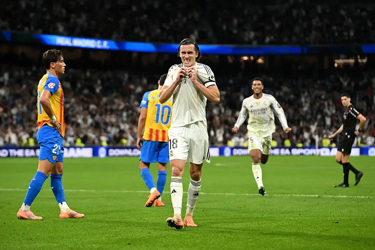 Ce samedi, le Real Madrid a dominé Valence avec une victoire écrasante de 4-0, consolidant ainsi son statut de prétendant sérieux en Liga. Les hommes de Xabi Alonso ont offert une performance impressionnante, mais c’est sans conteste Álvaro Carreras qui a attiré tous les regards. Le défenseur espagnol a non seulement brillé par sa solidité défensive, mais il a également marqué les esprits avec une frappe incroyable qui a fait le tour des réseaux sociaux.