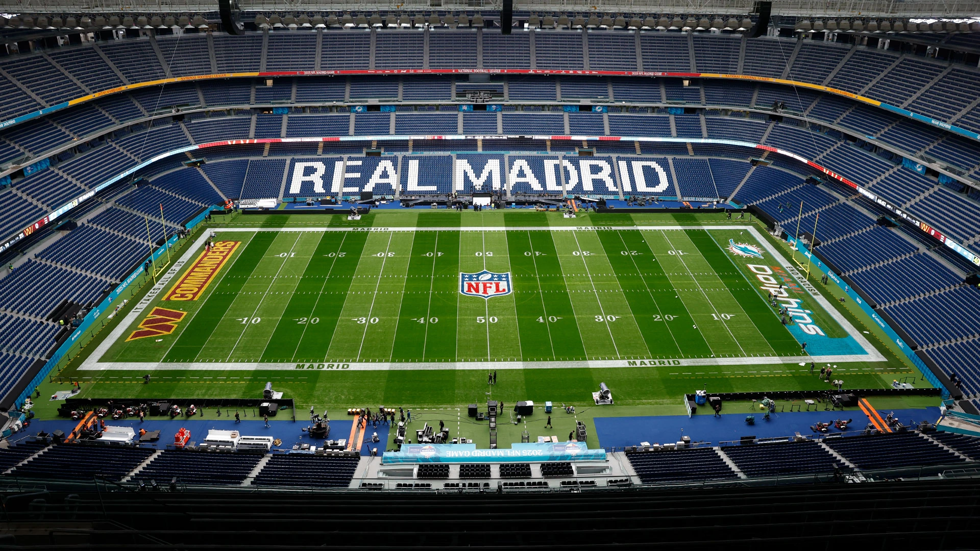 Le stade Santiago Bernabéu se prépare à accueillir un événement sans précédent : un match de football américain entre les Miami Dolphins et les Washington Commanders. Ce choc des titans marquera une première pour le célèbre temple du football espagnol, qui s’ouvre à des disciplines sportives variées. Les fans de sport sont impatients de vivre cette rencontre inédite qui promet d’être spectaculaire.