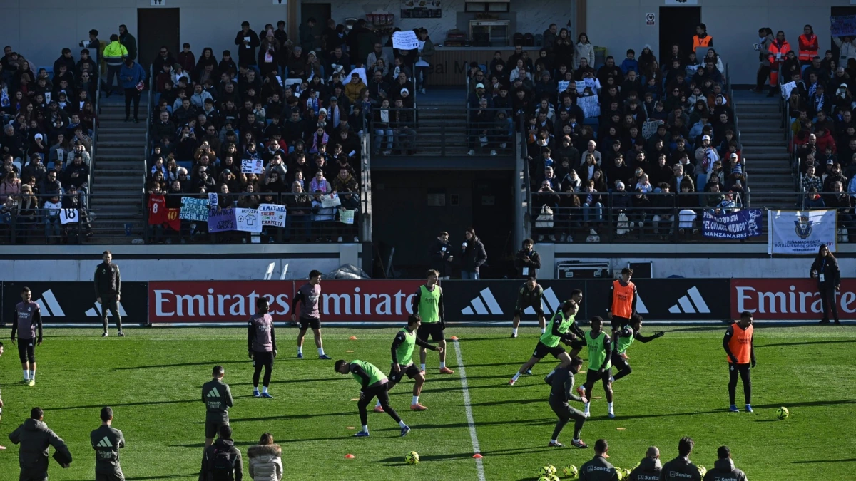 Ce mardi, le Real Madrid a célébré une tradition très attendue : l’entraînement à portes ouvertes de Noël. Les fans, en particulier les plus jeunes, se sont rassemblés dès les premières heures au stade Alfredo Di Stéfano pour admirer leurs idoles. L’atmosphère était électrique, avec des milliers de maillots blancs, des banderoles colorées et des téléphones levés bien avant le début de l’événement.