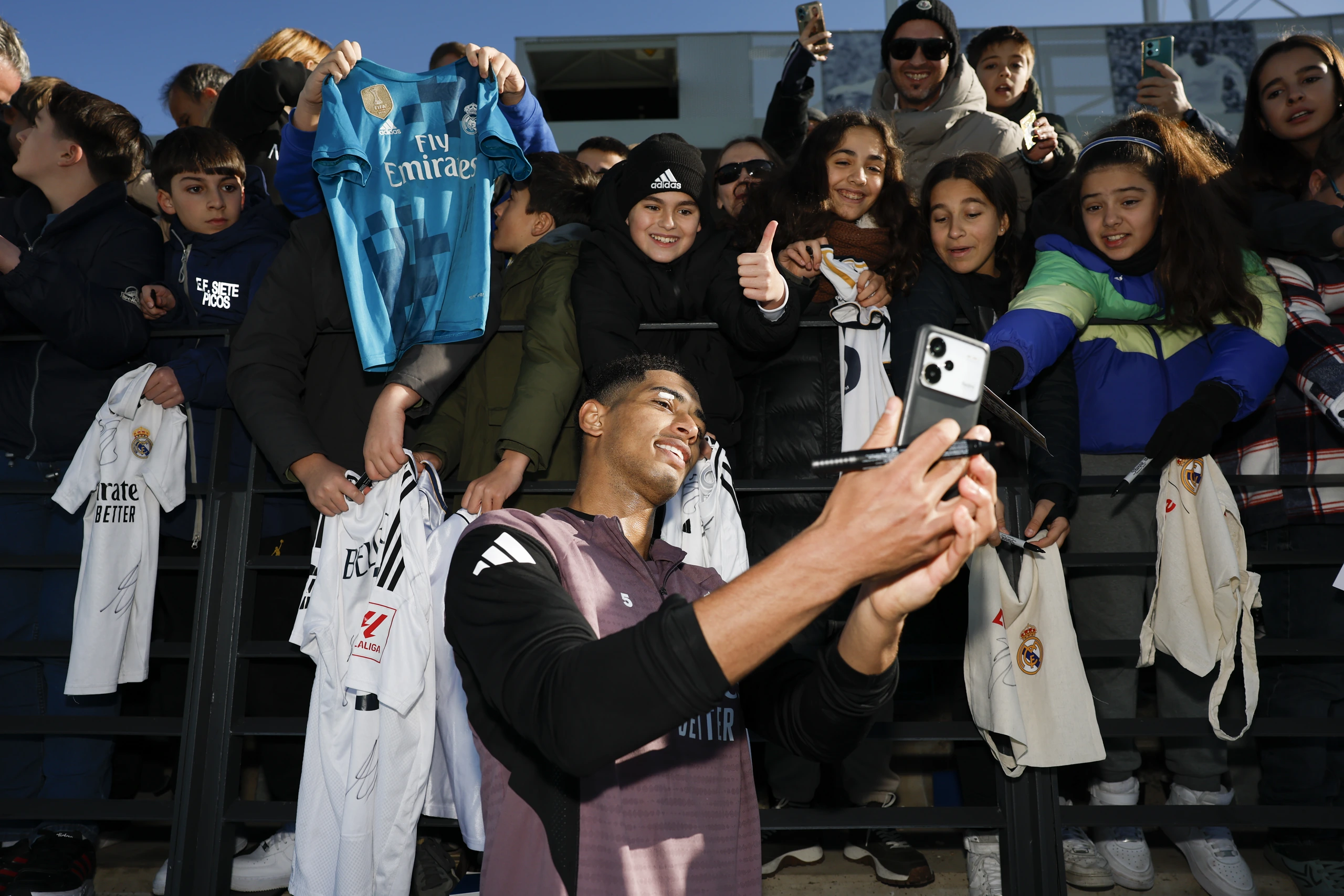 Dans les dernières minutes, l’équipe a disputé deux petits matchs tout en maintenant le rythme effréné malgré l’ambiance festive. La tradition du déluge de ballons dans les tribunes a également ravi les plus jeunes supporters présents. La séance s’est conclue peu après 12h30 par un moment fort : les joueurs de l’équipe première se sont dirigés vers les tribunes pour signer des autographes et prendre des photos avec leurs fans. Des figures emblématiques telles que Bellingham, Thibaut Courtois, et Fran García ont pris le temps d’interagir avec le public pendant près d’une demi-heure après la fin de l’entraînement. Xabi Alonso a également participé à ce moment convivial, échangeant sourires et chaleur avec la foule.